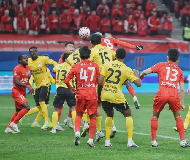 第22分钟,海港获得角球机会,李帅主罚角球直接旋向球门,西海岸门将李昊受挤压未能将球扑远,莱昂纳多迎球凌空抽射破门。不过角球开出后,让克劳德存在冲撞门将动作,裁判经VAR确认后判定进球无效。