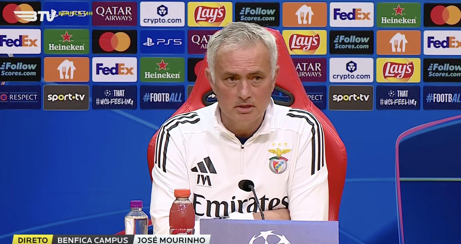 欧冠淘汰赛附加赛首回合,本菲卡将主场对阵皇马,本菲卡主帅穆里尼奥出席了赛前新闻发布会。